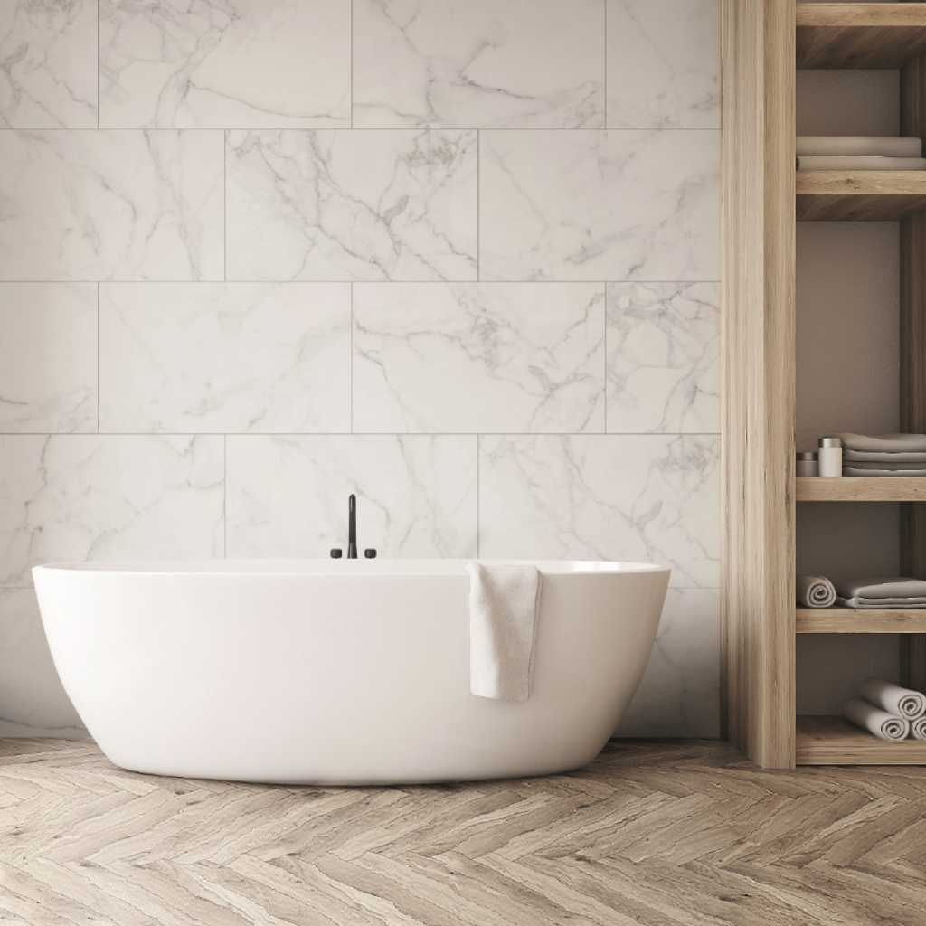 Installing DumaWall is quick and easy, with no need to work with complicated grout lines, tools and costs associated with ceramic tiles.