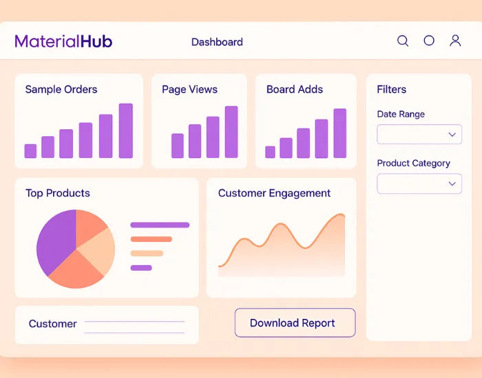 Your supplier portal shows who’s engaging with your materials, where samples go, and what converts — helping you make confident, informed decisions.